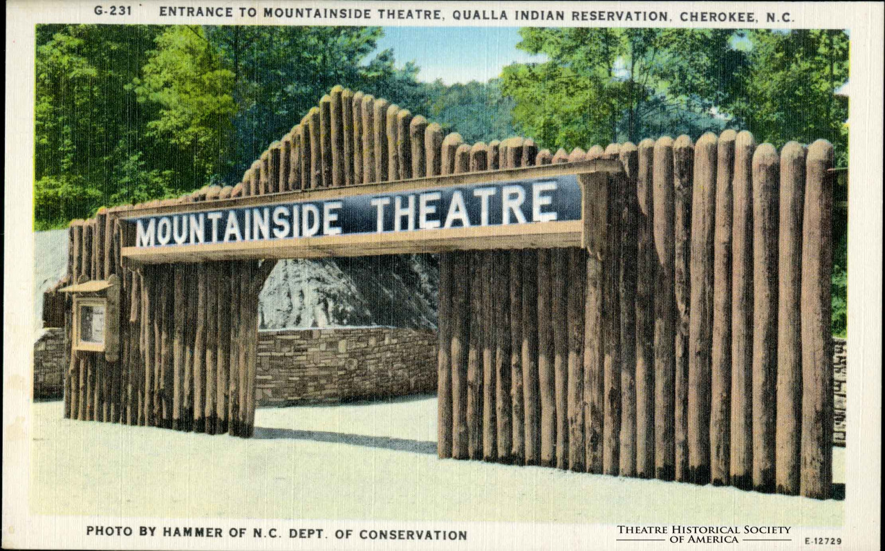 Another theatre whose single-play-repertoire would not normally be represented in our collections is the Mountainside Theatre in Cherokee, N.C. The Mountainside Theatre also specializes in an outdoor historic drama, “Unto These Hills.” While “The Lost Colony” was based on the received histories of the Roanoke Island colonists, “Unto These Hills” is a retelling of Cherokee history and interaction with colonists from De Soto to the trauma of the Trail of Tears.