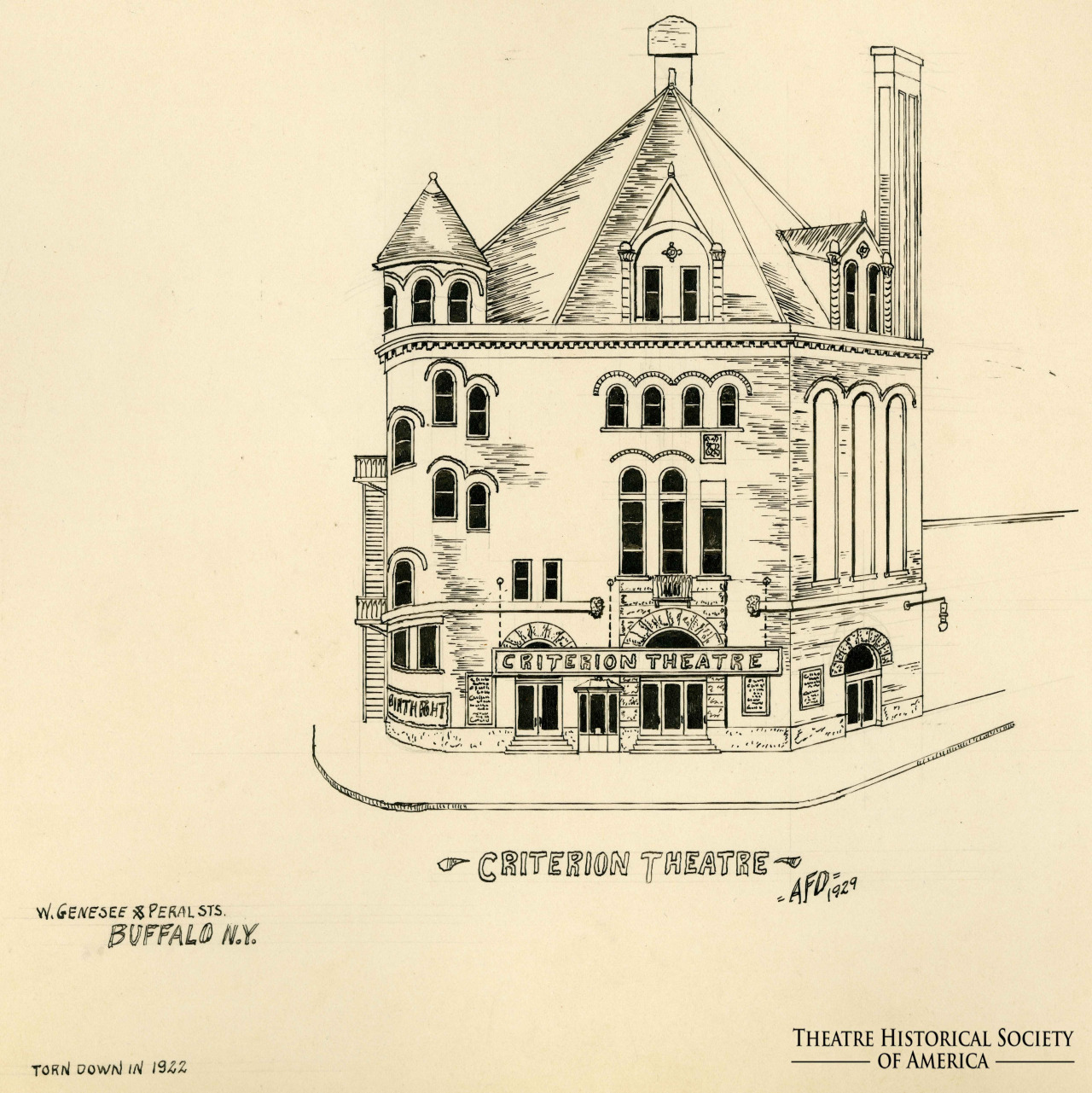 Anthony F. Dumas’ hobby creating of intricate theatre drawing was so well executed, it is easy to forget that those were drawn for his own personal pleasure. When his drawings are compared to photographs from the day that he may have been drawing from, it’s even more impressive. Western New York Heritage: Western New York’s Illustrated History Quarterly, has a webpage with a history of the Criterion Theatre and period photos that help to see the real quality of Dumas’ work.