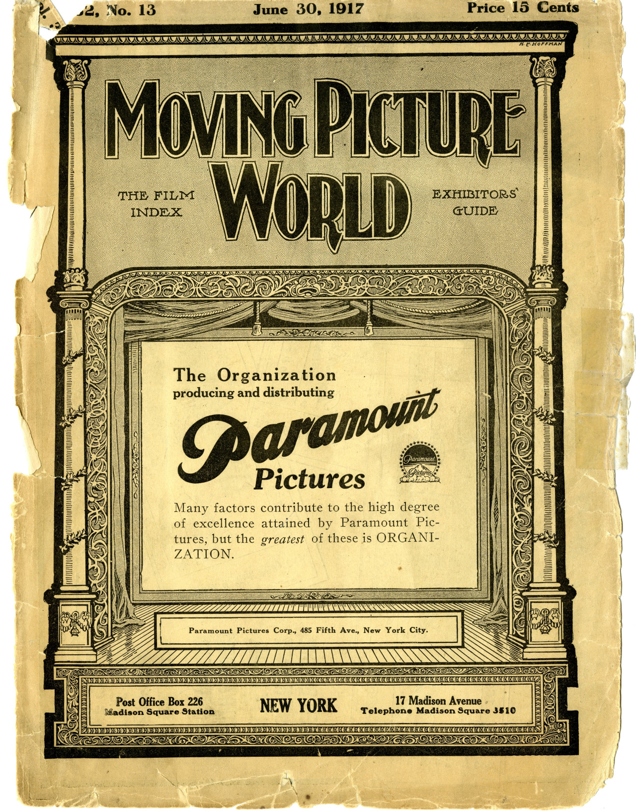 James Petrie (J.P.) Chalmers, Jr and was targeted to film exhibitors. The issue’s articles focus on distribution rights and options, reflecting the early needs of theatre and movie house owners. Later periodicals marketed to film exhibitors would focus more heavily on the viewing experience, but in 1917 there was a bigger focus on securing the films themselves!