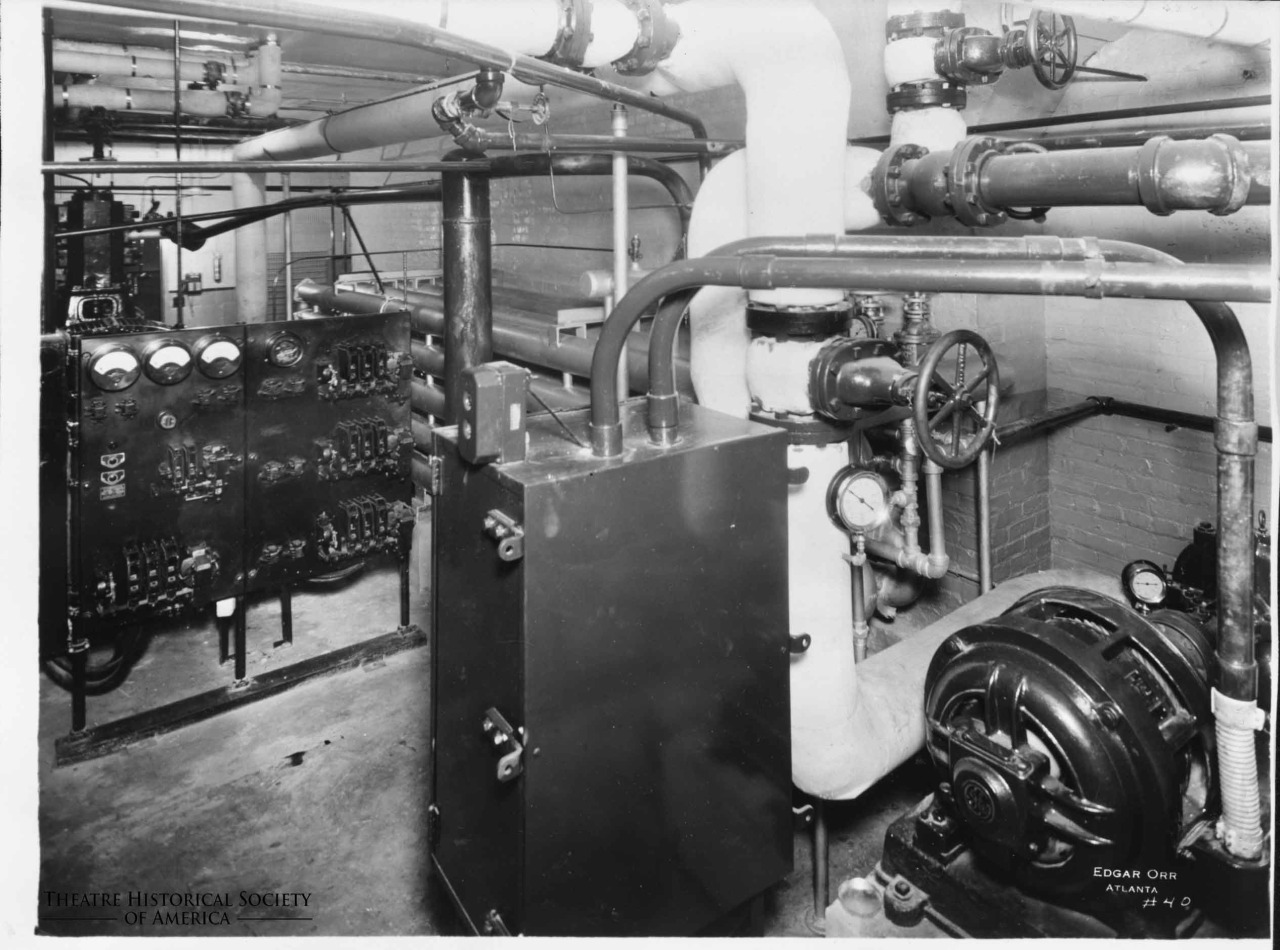 The Loew’s Grand Theatre renovations weren’t just to update the design. The mechanical aspects of the building were also reworked in order to provide the latest in clear film project and cool air conditioning, as seen in the first and last photos, respectively.