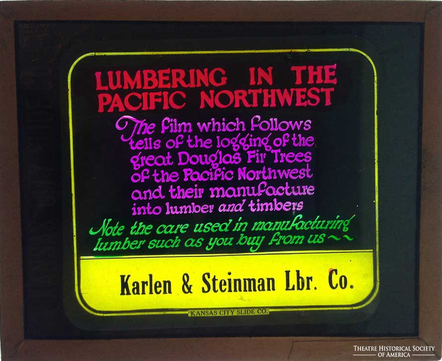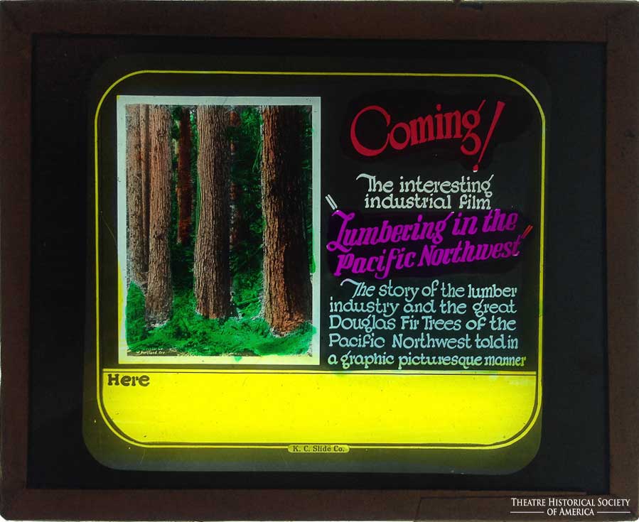 Though the glass slide technology may seem extremely old-fashioned, many of these slides display savvy and innovative advertising techniques. The first of these two slides appears to be a simple announcement for an industrial film, but when paired with the second slide, it’s clear this is a case of integrative marketing.